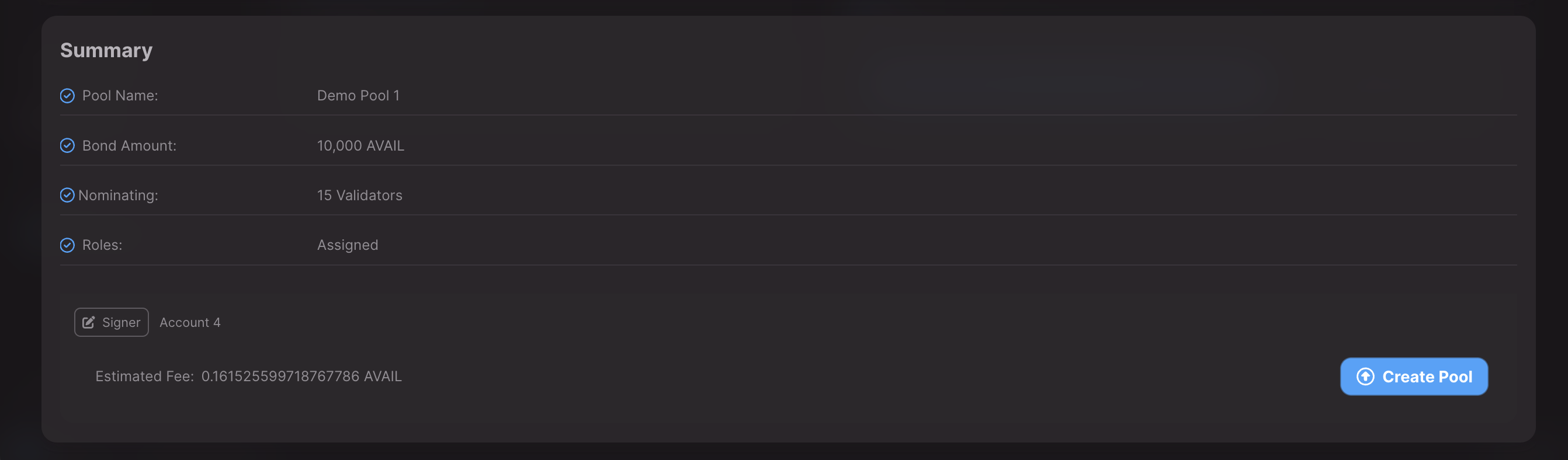 Please note that this tutorial showed you how to join a recommended nomination pool on Avail by clicking on the Ready to Join Pool